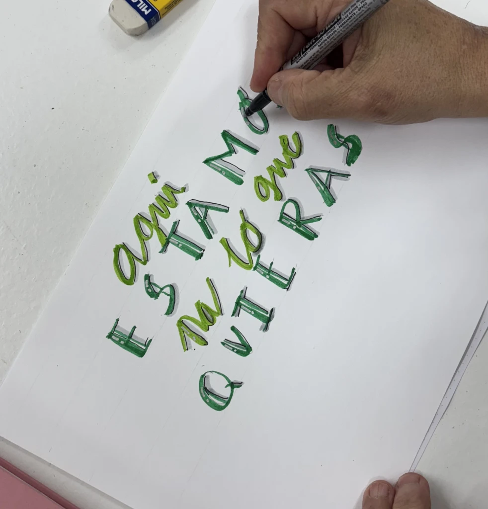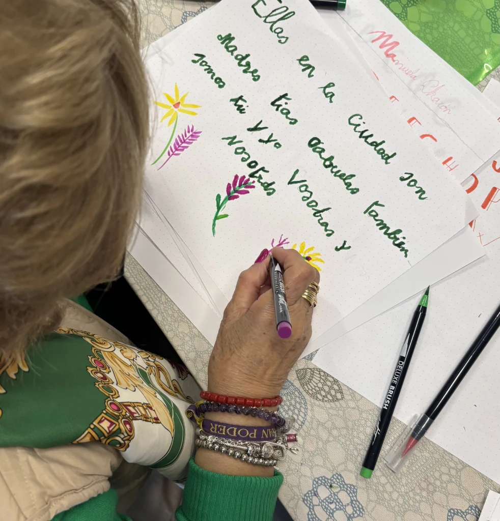 Taller de lettering para la concienciación sobre la violencia de género impartido entre enero y abril de 2025 para asociaciones de mujeres de Jerez, a través de la Federación La Voz de las Mujeres. En cuatro sesiones se realizaron dinámicas introspectivas sobre identidad, deseos, miedos y vínculos, que las participantes plasmaron en frases personales elaboradas con técnicas de lettering. El resultado se recopiló en un cuadernillo maquetado y editado por Salvartes Design, que reúne sus trabajos y relatos de vida de algunas de las alumnas, acompañado de un epílogo de la autora.