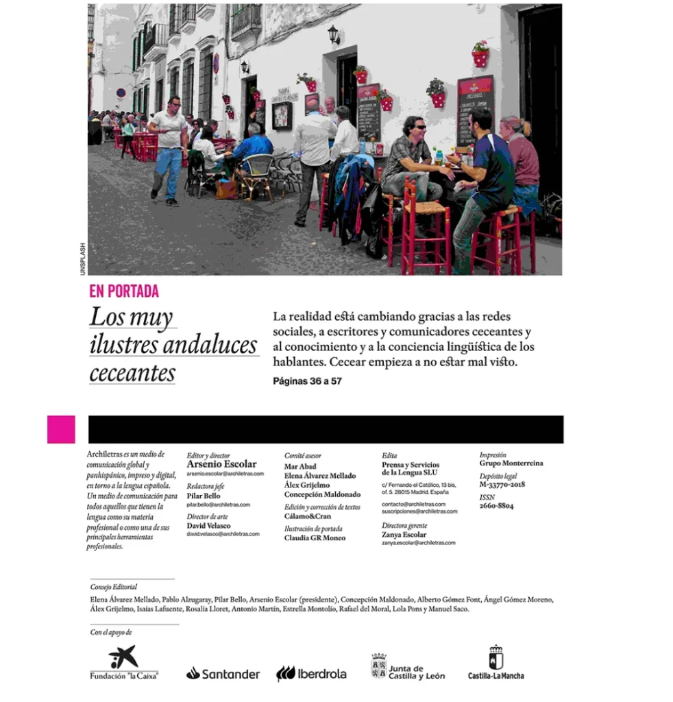 Portada y viñeta interior del número de abril-junio de 2025, publicación que se centra en el acento andaluz y en especial, en el ceceo.