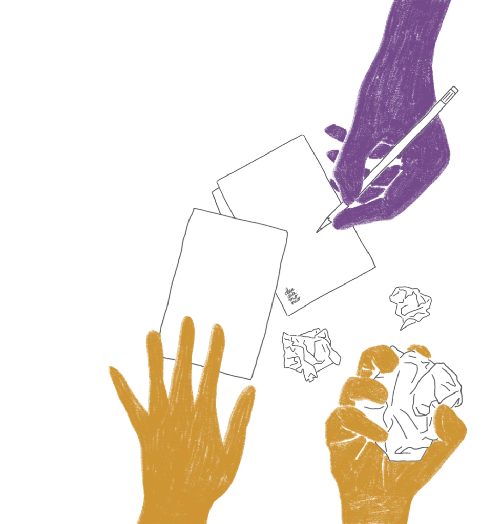 Ilustración de portada y dos dibujos más en el interior del poemario ‘Las manos sobre el vientre’ de Sonia Herrera Collado. Con este juego de tres ilustraciones, abordamos el autocuidado, el cuidado colectivo, la amistad, los vínculos familiares y la conexión con una misma a través del cuerpo, la carne, la sangre.